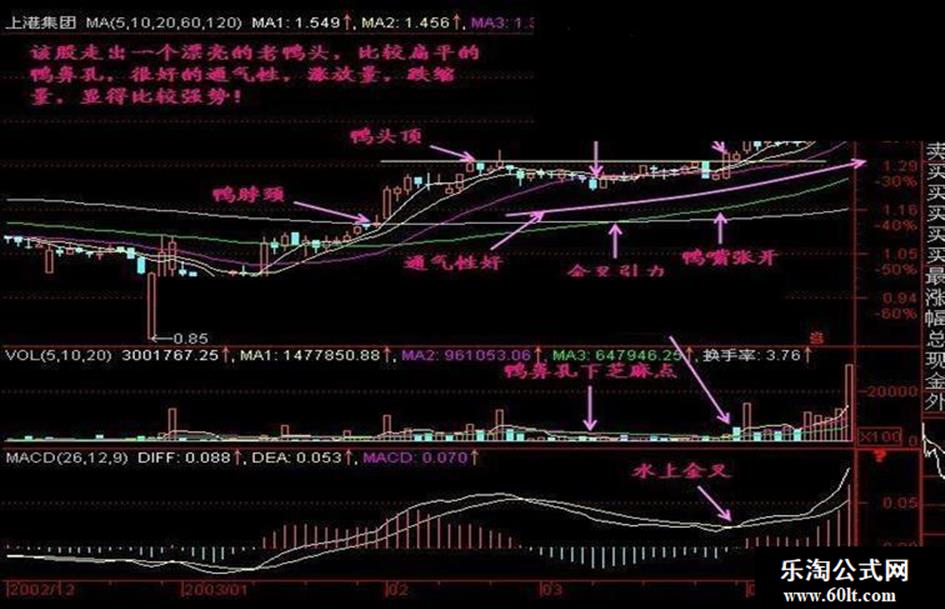 小结:老鸭头是广通经典之一,老鸭头其实就是庄家建仓、洗盘、拉升的一系列动作的组合,只要把老鸭头学好,每年在股市里面找几个买入是不成问题