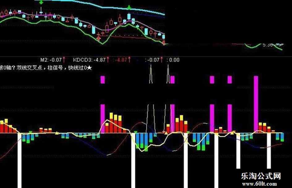 当满足条件M2上穿0时,在0和25位置之间画柱状线,宽度为3,0不为0则画空心柱.画洋红色