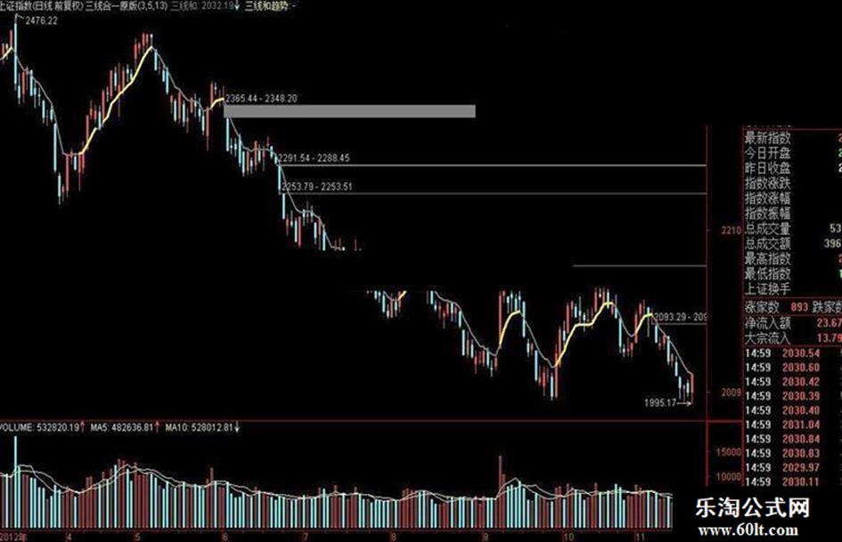 三线和趋势:IF(三线和>REF(三线和,1),三线和,DRAWNULL) COLORRED LINETHICK3;