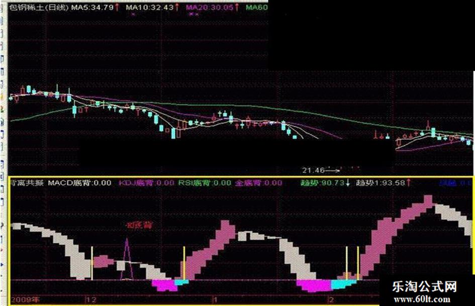 全底背:IF(MACD底背 OR KDJ底背 OR RSI底背,50,0),COLORFF00FF;