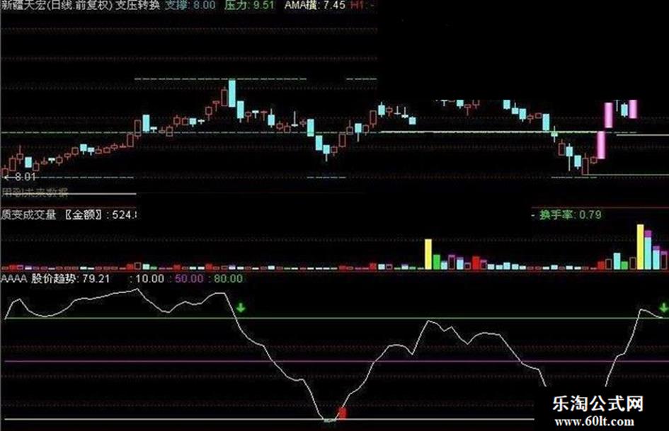 STICKLINE(股价趋势<=10,10,股价趋势,1,0),COLORLIBLUE;