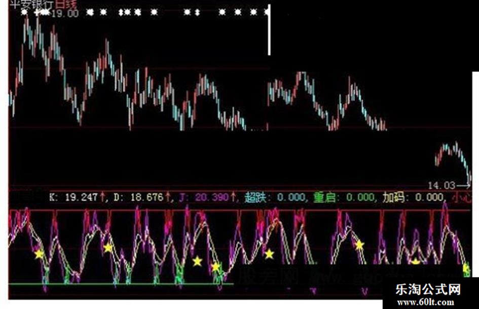 加码:IF(CROSS(J,REF(J+0.01,1)) AND BDDD AND BETWEEN(J,20,60),1,0),COLOR00FFFF,POINTDOT,LINETHICK0;