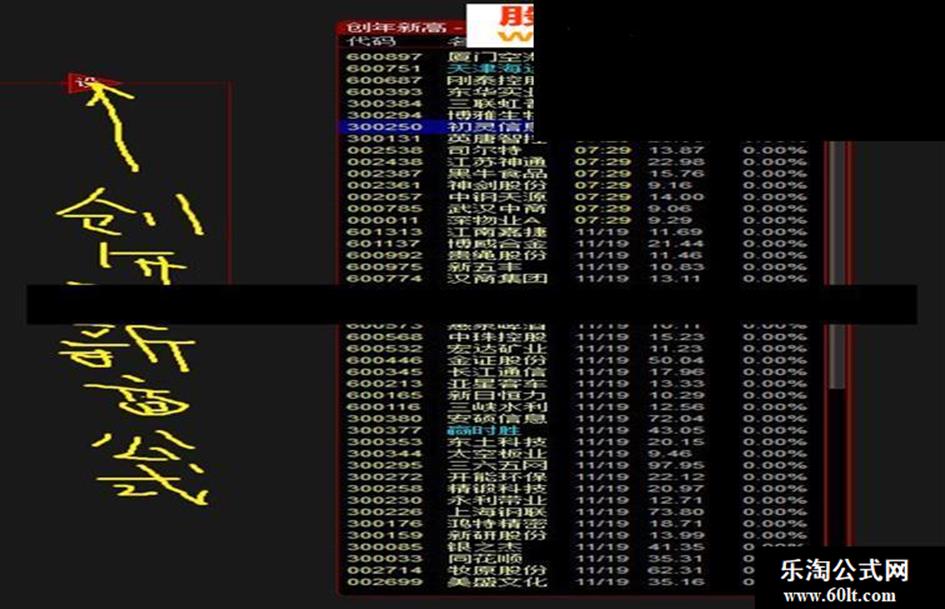 STICKLINE( 创新高 AND BARSCOUNT(C)>=60,L*0.99 ,L*0.998 ,2 ,0 ),LINETHICK2,COLORYELLOW;