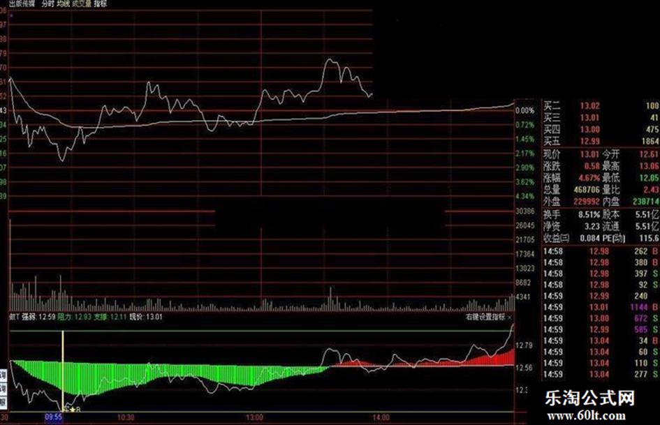 指标用法 打开通达信软件 找到目标股后进入分时图 将下面的分时指标修改成此指标即可