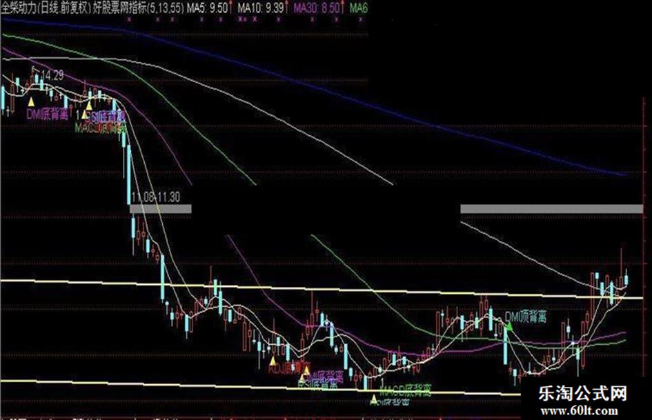 底背离DMI:DRAWTEXT(FILTER(B4>0,5),LOW,'▲'),COLORYELLOW;
