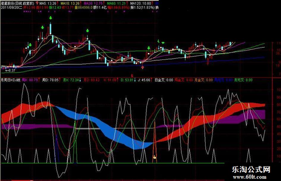 月死叉:IF(CROSS(月D,月K),60,0),COLORGREEN;