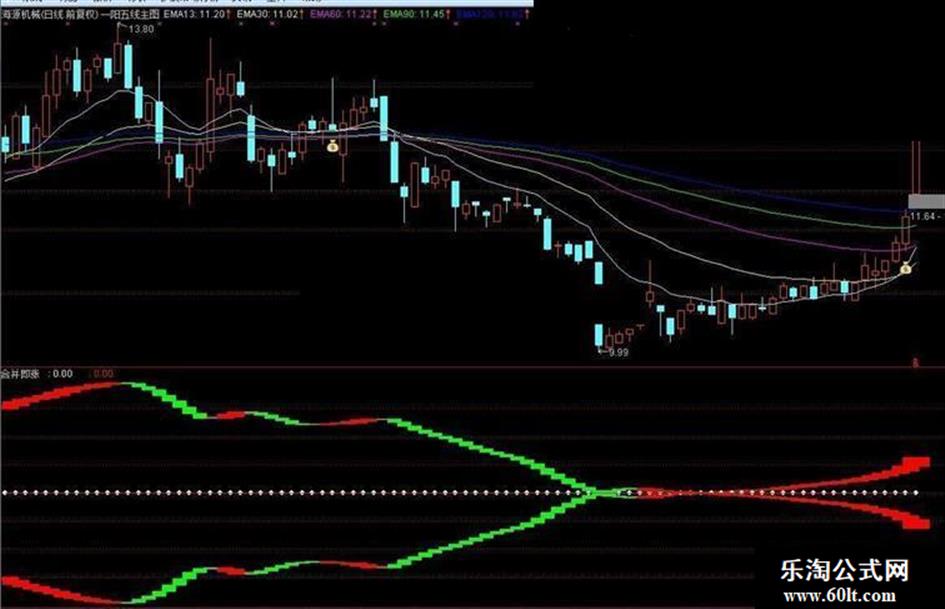 当上下两线回归中规为零粘合时,波段看涨,可以逢低布局,当上下两线张开幅度较大达到80以上时,就要注意回避风险!