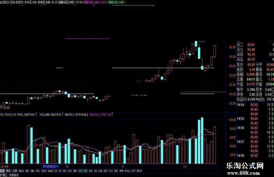 超越后压力线1:IF(C>未来压力线,CONST(POW(SQRT(未来压力线)+1,2)),IF(C>未来压力线 AND CURRBARSCOUNT<10,CONST(POW(SQRT(未来压力线)+1,2)),DRAWNULL));