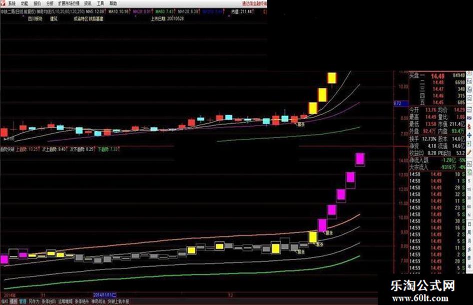 次上趋势:MA(LOW,20)*1.1,COLORYELLOW;