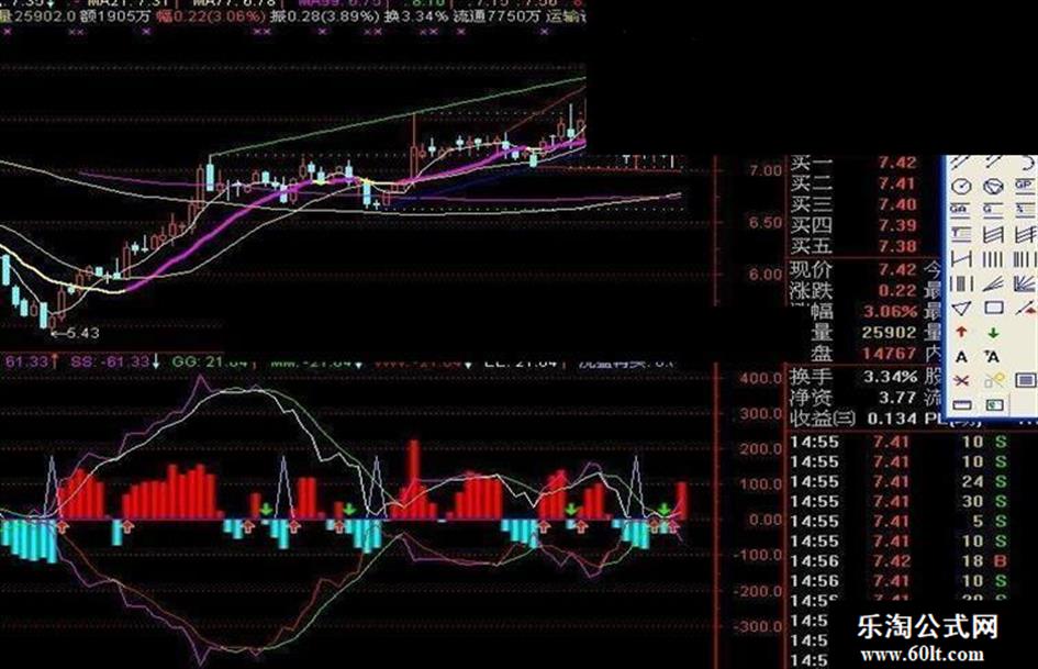 ZZ:=(HHV(H,3)+LLV(L,3))/2;A:=IF(C>ZZ,VOL,0);B:=IF(C<ZZ,VOL,0);