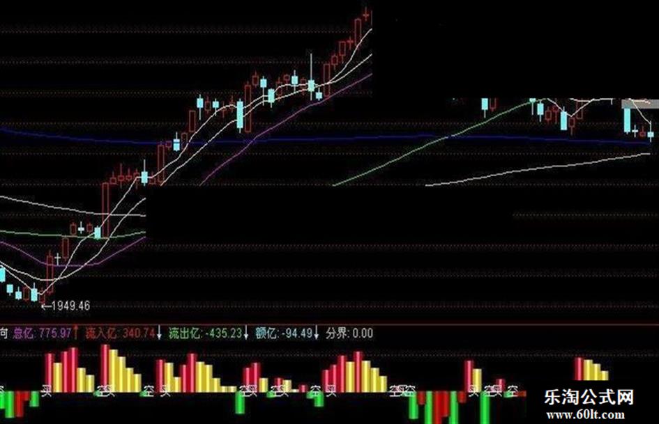 流入亿:IF(CLOSE>OPEN,VAR1*(HIGH-LOW),IF(CLOSE<OPEN,VAR1*((HIGH-OPEN)+(CLOSE-LOW)),AMOUNT/2))/100000000,COLORRED,NODRAW;