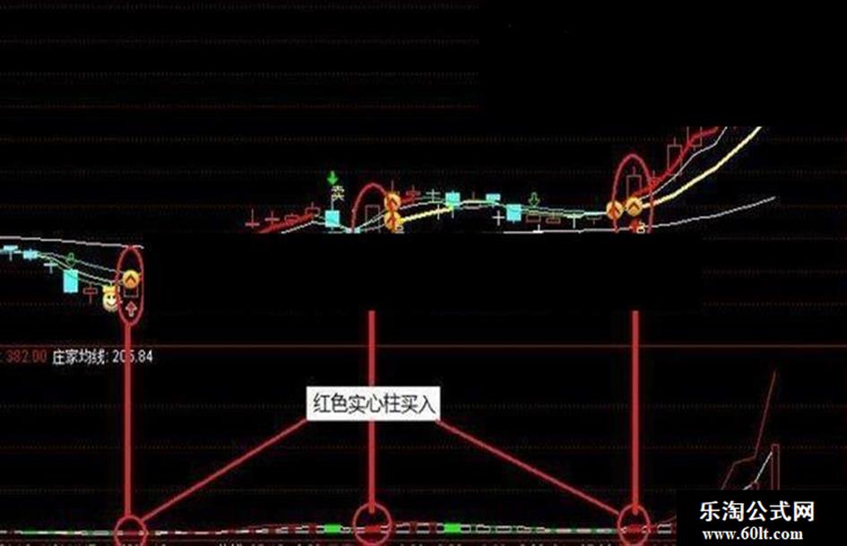 STICKLINE(CROSS(庄家均线,庄家线),0,庄家均线*1.2,3,0),COLORGREEN;