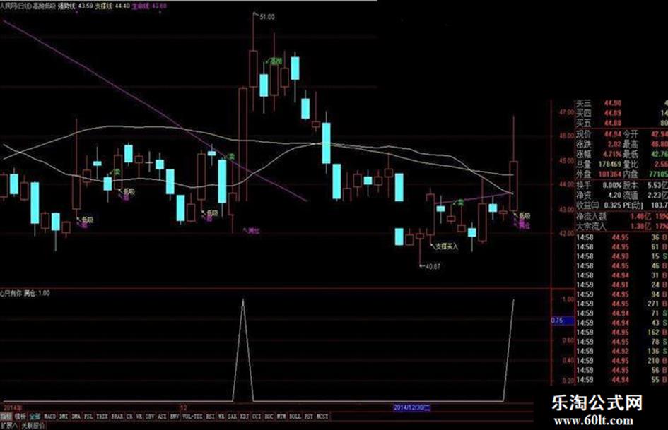 3、生命线以下的股票尽量不要参与操作,但选股信号往往出现在生命线以下。其实鱼与熊掌不可兼得,我们买卖股票也不可能买在最低,卖在最高,只赚操作线上最安全的一段就可以了。三线多头排列,强势线在最上面,股价刚上穿强势线或回落在强势线上附近,就是买入良机,股价跌破强势线就是卖出的时候。