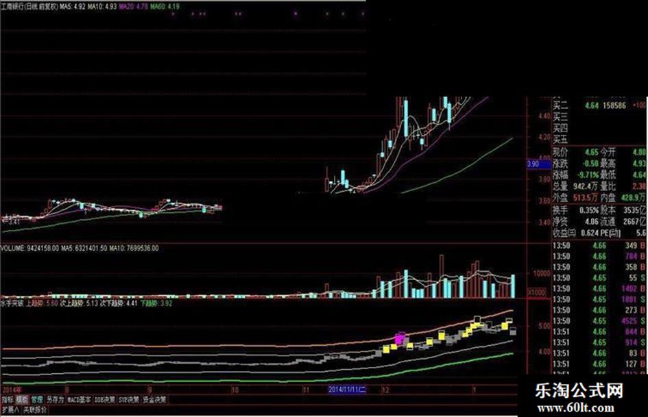 次下趋势:MA(HIGH,20)*0.9,COLORWHITE;