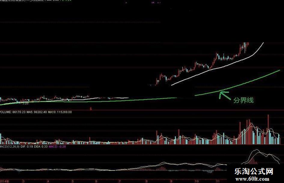 2、白色均线分为三段:一是横盘,指该段时间内构建股价平台,等侍着股价进行取向。二是斜向上升,该时间段时为主升段,最好是与均线保持着误差较小的距离匀速上升,如果突然出现K线远离的暴拉,随时准备抛逃。三是下降段均线,同属于匀速下跌,这种是跌个不休型,必段小心。特殊段,是指该白色均线转头段,分为上下转向,这个不用我解释了吧,都是老股民了。
