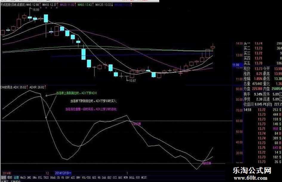 DRAWTEXT_FIX(1,0.5,0.01,1,'当连续上涨到高位时,ADX下穿ADXR或下穿60时卖出;'),COLORGREEN;