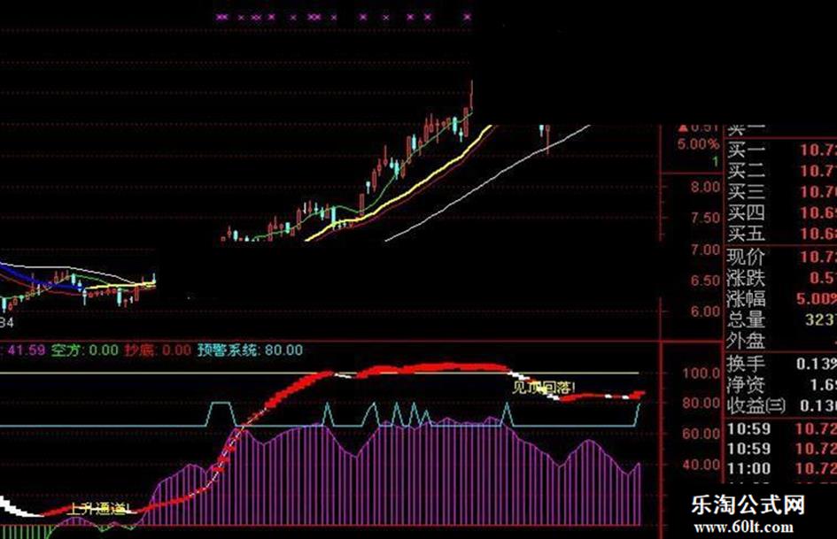 好当家指标从趋势和量能两个方面进行验证,趋势线由白砖红为买入信号,由红转白为离场信号,紫色为多头强势,绿色为空方强势,出现上升通道就是买入的信号,出现见顶回落,就是卖出信号。并且增加了预警系统