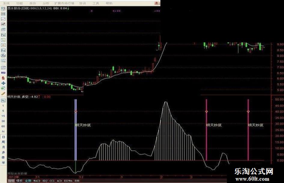 DRAWTEXT(FILTER(VARF=1,3),30,'明天抄底'),COLORYELLOW;