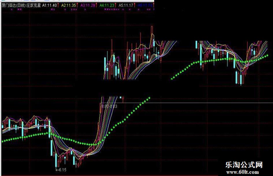 1、买点:当“神奇中线”由向下发散转变为向上收拢并即将或已经开始向上发散时为极佳的买点。当“神奇短线”A8与A9发生“金叉”时为短线“买点”。