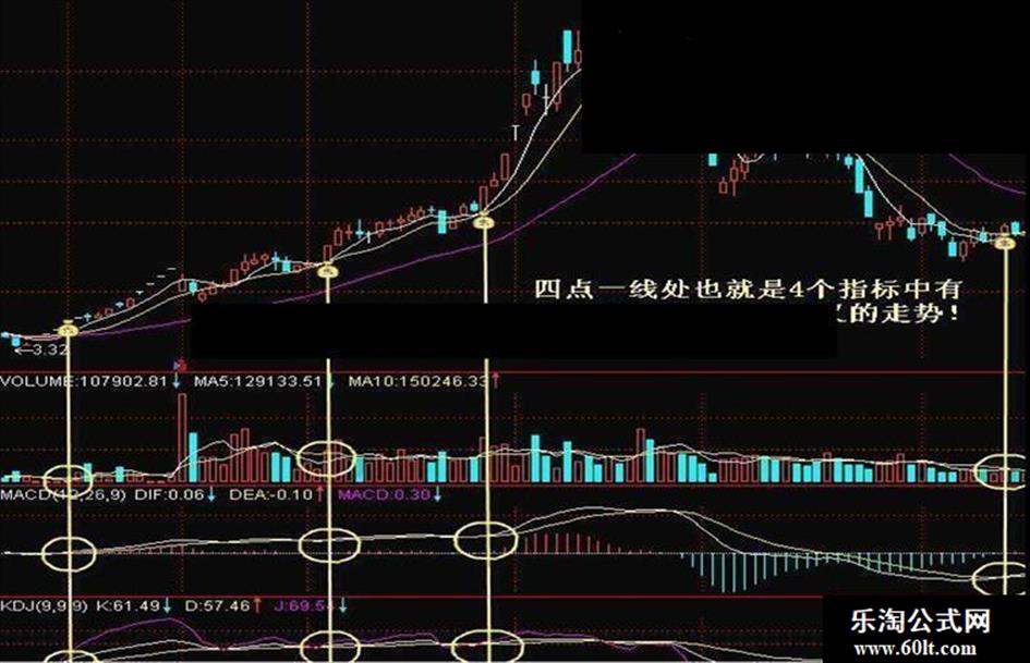 ③、四个指标其中另外1-2个指标可前后金叉相差1-2天(1-2周)(1-2月),相差太多者,定律不成立。