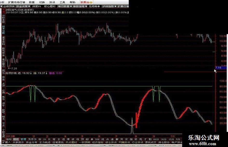 此指标带选股公式,最优点无未来函数,精准,选出的票较少,容易分析过滤,(图中选出的是2015年3月13日盘后2只股其中中国石油)适合散户新手结合自己常用指标更为放心使用。