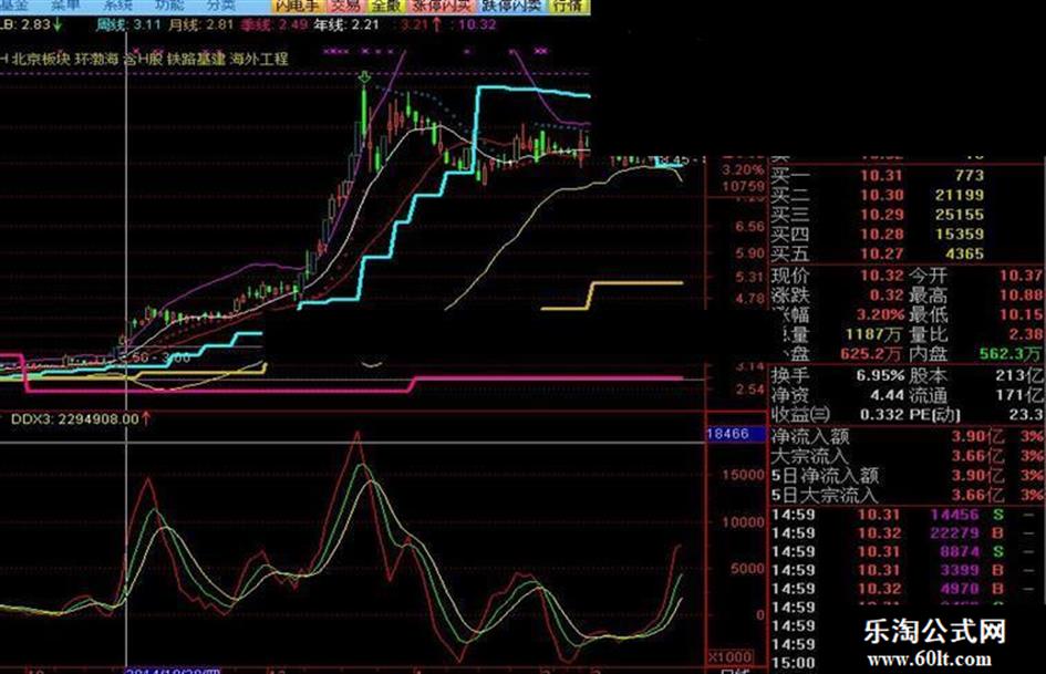 卖盘:=量_价*(1-JGL_DX)/2,COLORFFFF00,NODRAW;