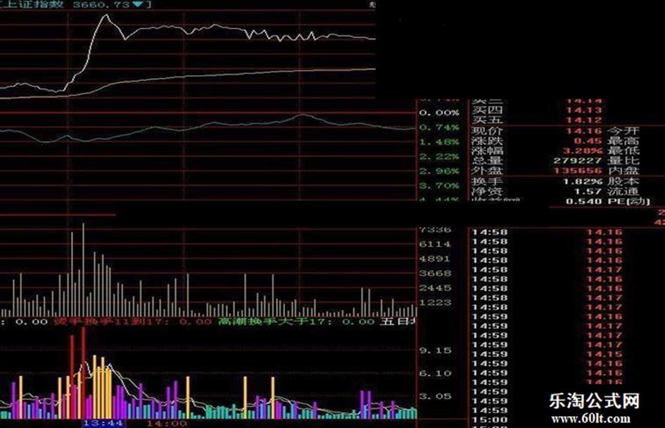 是分时公式: 先将公式导入,然后在工具-系统设置-设置2中左边选中指标,添加到右边的选中栏中。到分时界面,在指标区,点右键-换手图。 可以实时观察量能的变化,选择出手时机,是买还是卖。。。决策由此变的富有自信!