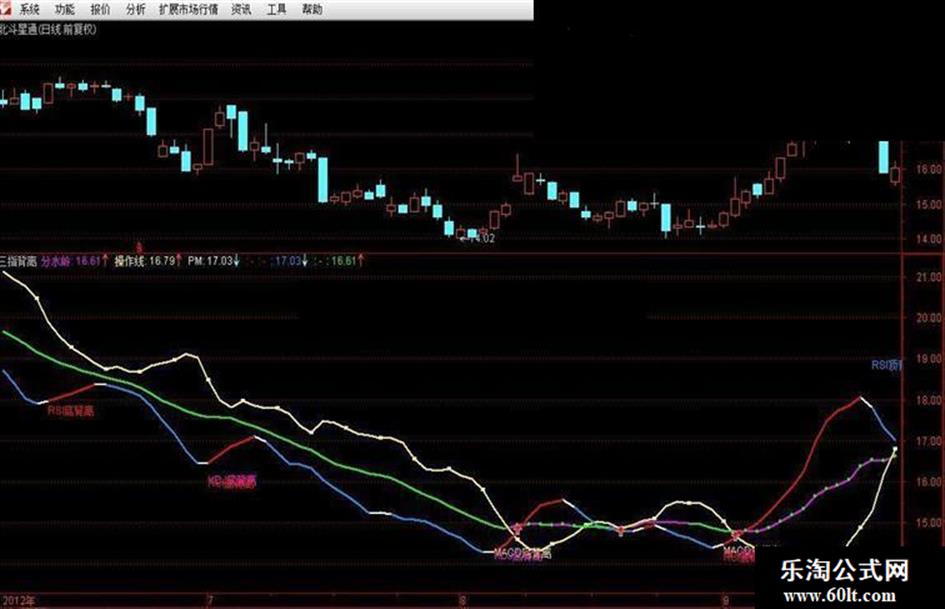 DRAWTEXT(B1> 0,L-0.02,'MACD底背离'),COLOR00FFFF;{MACD底背离}