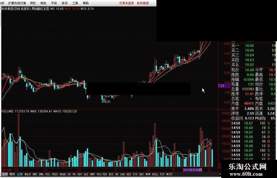 非常谢谢“龙哥2014”同学提供的视频,我看了,按老师的理念写了,不是很理想。所以,取之精华吧,用5 10 15均线再加上。视频中反复强调均线的角度一定要陡,我试了,发现均线越陡,庄家出货率越高,有诱多成分。估计这个视频操盘手也看了,故意做出来给散户看的,于是反其道行之,去掉太陡的那些,效果果然要好。至少很少站岗吧,安全起见。10日均线视频中反复强调很重要,故特意加粗了10日均线。顺上持有,顺下获利出局,没获利补仓降低成本,相信一定会有收获的。周线都拉升了,怕什么?坚持就是利润。再次谢谢龙哥2014同学提供素材。