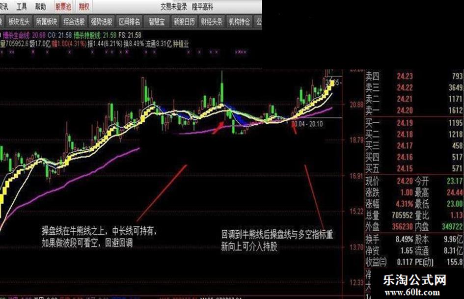 进入A股市场,长线玩过,短线做过,最终结果都不理想。经历过无数的失败和努力学习,终于找到了可以实现稳定赢利的操作方法——牛熊操盘法。自动识别行情,拒绝未来函数。对于网上那些牛的不能再牛的选股公式,我只能膜拜了,因为这些所谓的牛公式只能在特定的小环境下使用,或者暗藏着未来函数。作为有经验的老股民来说,稳定盈利才是正道。对于现在的牛市A股,运用本操盘线,无论大牛、小牛或是黑马、白马,只要按照规则操作就可吃到最大的鱼身这段利润!对于转弱的股票,能及时提醒你远离观望。本指标是结合趋势、量能,借鉴前辈的经验编制而成。简洁而实用,是在本轮牛市中必备的波段神器!
