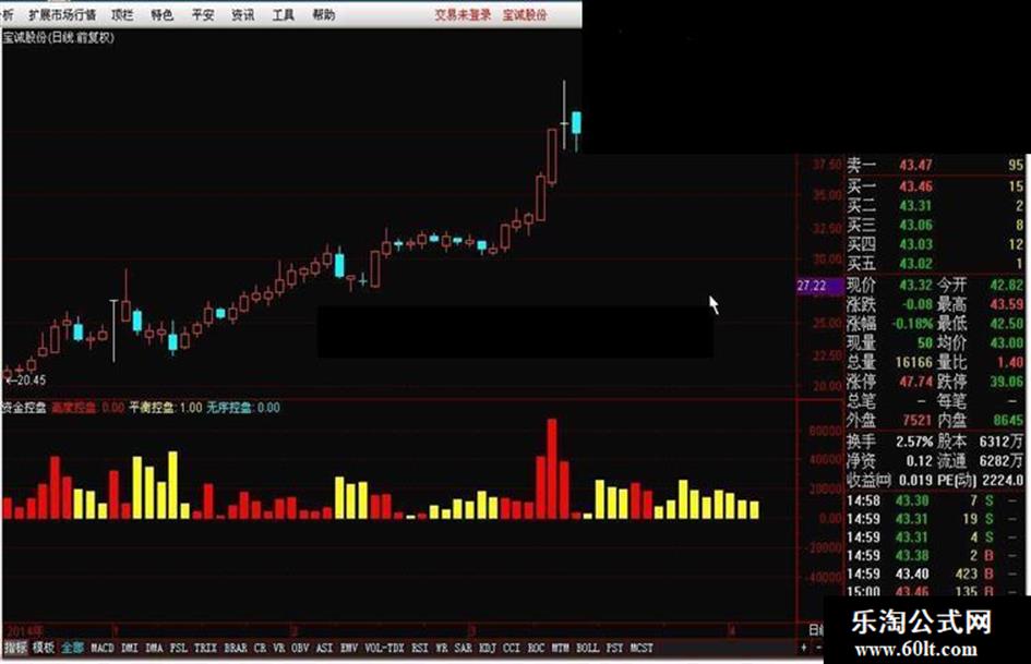 高度控盘:日线锁定 AND 资金锁定 AND 日期锁定 AND IFF(控盘>REF(控盘,1) AND 控盘>=0 AND V>0,1,0),NODRAW,COLOR0000FF;
