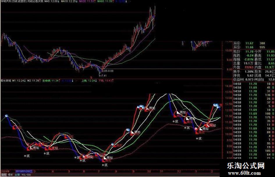 1、当A线从下方上穿下轨,则为中线买入点,此时最好下轨走平;