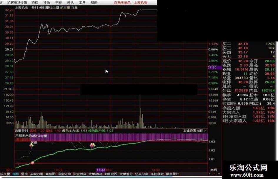 DRAWTEXT(CROSS(EXPMA((DCLOSE/VBNH),120),1.0029),1.036,'观察分时量 '),COLORWHITE;