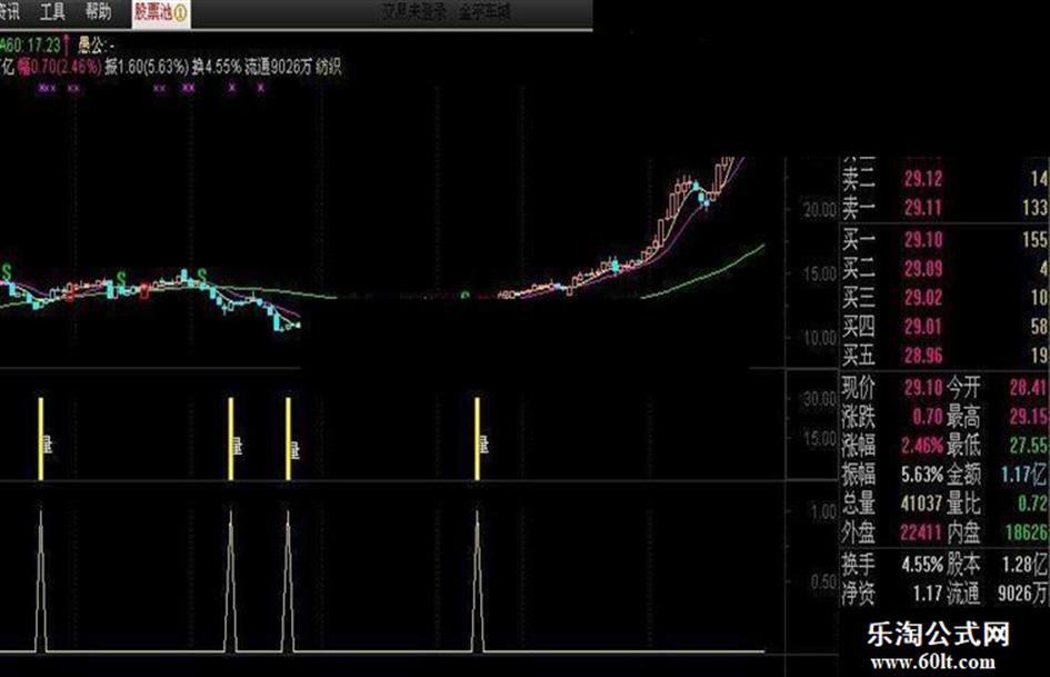 量:DRAWTEXT(CROSS(0.9,1/VOL*1000>0.01 AND "KDJ.J"<0),L*1,'量'),COLORWHITE;