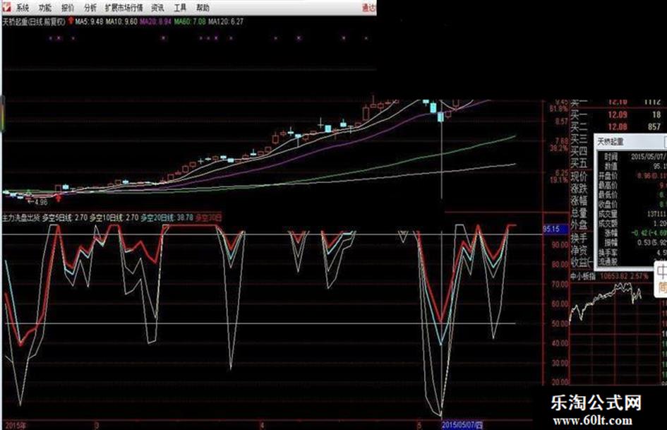 主力洗盘出货 该指标在副图上,当短期线5日跌穿50时,而中长期多空30日线还在50以上,说明主力没有出货,是洗盘。 如果短期5日线和中长期30日线都破50,那是主力出货了