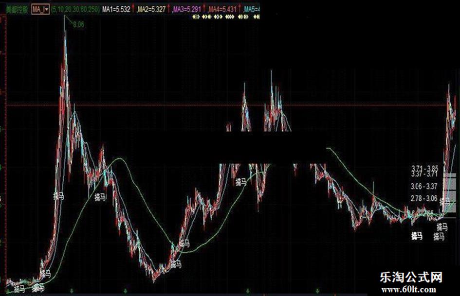 DRAWTEXT(CROSS(RSI,7.1) AND MA(V,5)>MA(V,10) AND MA(C,5)>MA(C,10) AND MA(C,20)>MA(C,30) AND C>MA(C,120),L*0.79,'擒马'),COLORWHITE;