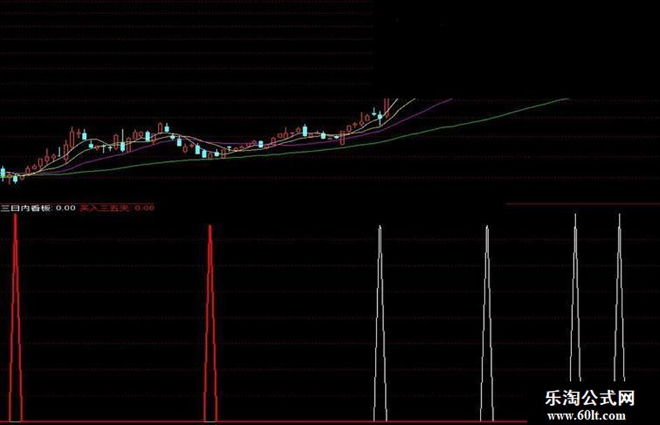 买入三五天:IF(REF(TJ,1)=0 AND TJ>=1,80,0),COLORRED,LINETHICK2;
