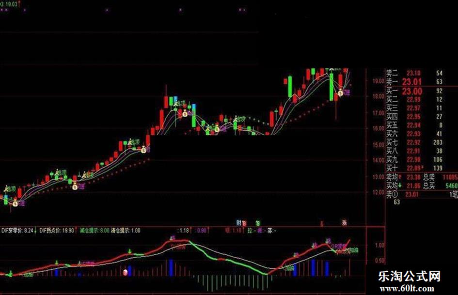 DRAWTEXT(CROSS(趋势,90),H+0.03,'▲大顶'),COLORRED;