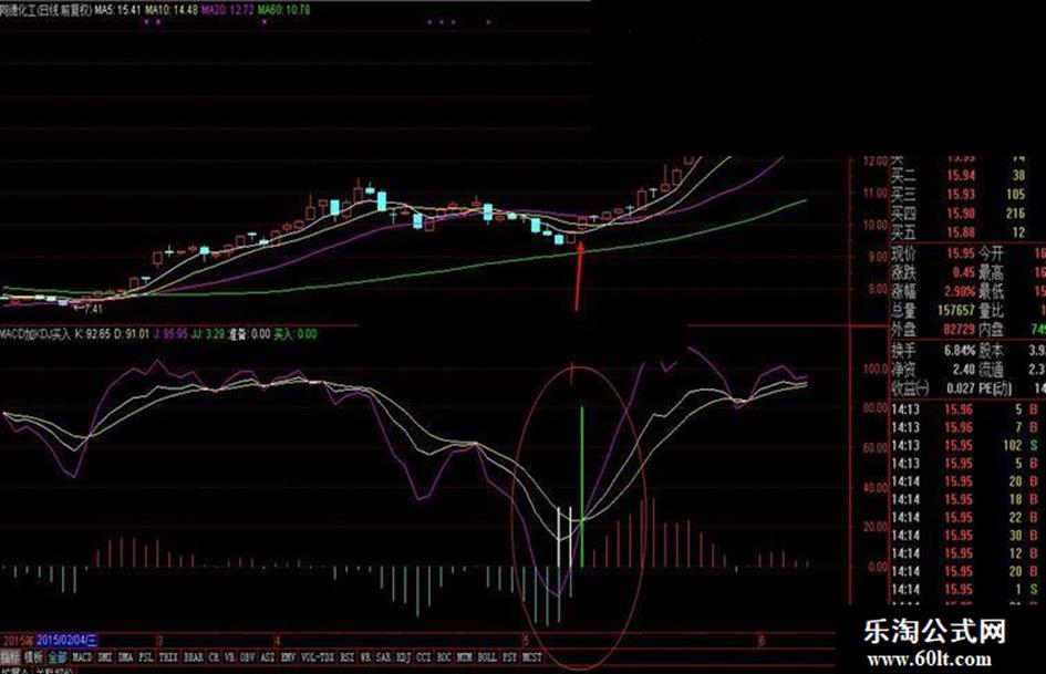 K:=SMA(RSV,3,1) ;{白色} D:=SMA(K,3,1) ;{黄色} J:=3*K-2*D ;{粉红} JJ:=J-K;{JJ要红色,J-K>0,红柱, J-K<0兰柱}