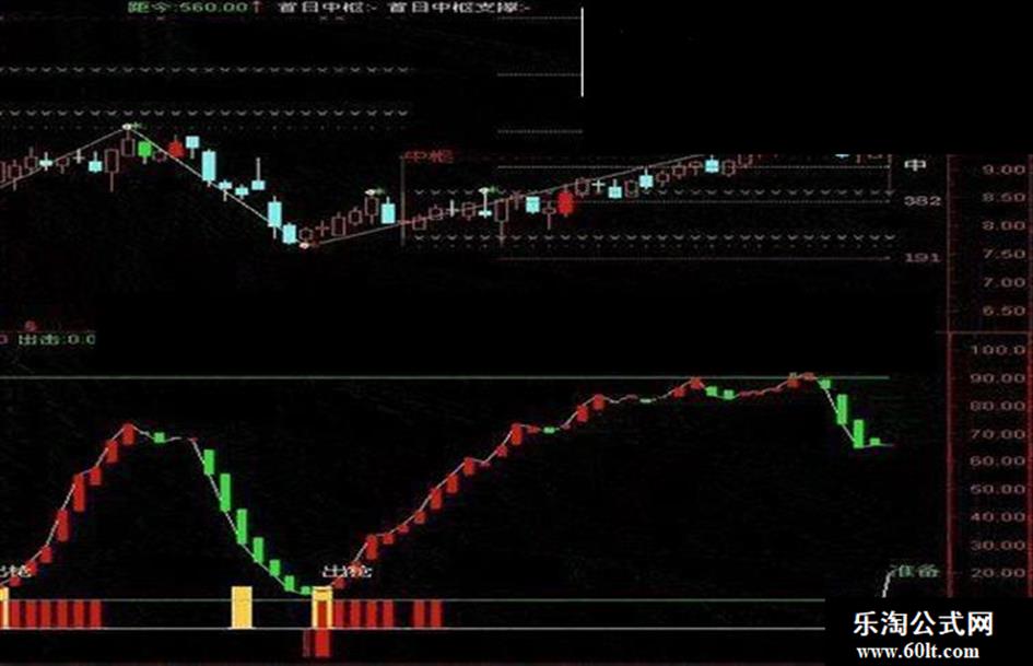 开始拉升:STICKLINE(地>天 AND 地<0,10,0,1,0)=1,COLORRED;