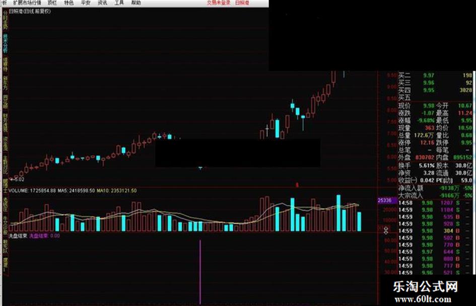 洗盘结束:IF(A6 AND A5 ,60,0),STICK,LINETHICK2,COLORF00FF0;