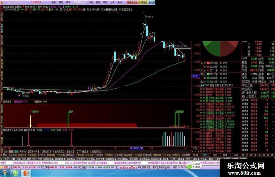 V型反转:REF(GF2,1) AND C>O AND C/REF(C,1)>1.04 AND TT>0 AND CROSS(TT,TT1) AND YY;