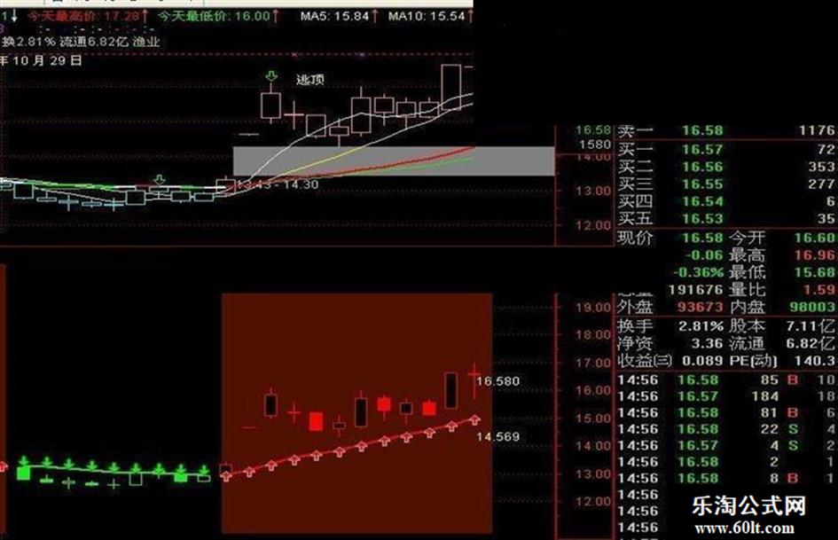 趋势线:=(MAH+MAL)/2 COLORGREEN,,LINETHICK2;