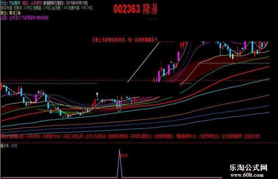 说明:今天是“母亲”节,大爱的节日,无以回报,只有发出自己潜心研究的强势指标。虽有不舍,还是发出来,真正的擒大牛指标。只要上升趋势没有改变,每一次的回调都是“绝佳”买入点。公式简单实用,配合成交量一起使用会起到事半功倍的效果。慢慢揣摩,必有收获……。顺祝天下所有母亲幸福安康!!
