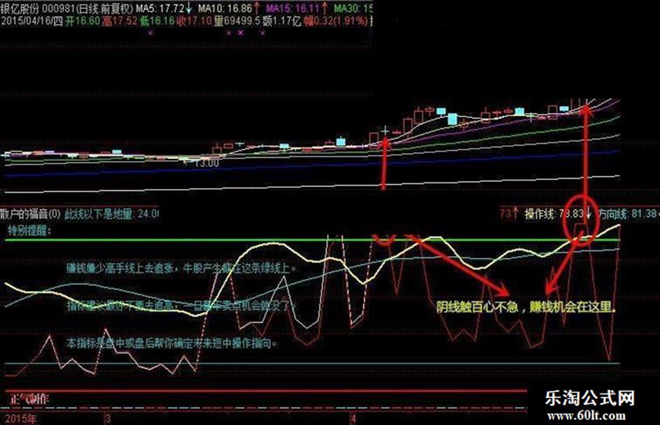 这个指标是我自用的,献给买卖股票根本不清楚股票在什么位置,散户的福音指标可以帮你,指标运用的好可以把风险降到最低。本指标非常简便只要仔细研读说明一般不会很难。掌握了说明技巧就是握有一把宝库的钥匙,需要什么时候开启就可以任意去开启,本指标的意义就是使炒股买卖更方便。