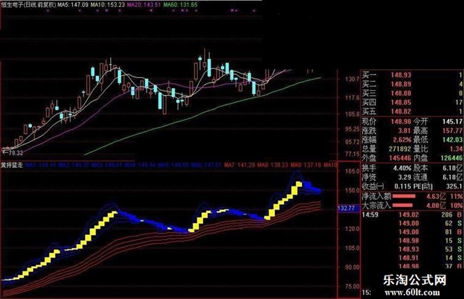 再次分享个指标黄持蓝走,顾名思义就是黄颜色站稳就可以持股,蓝色站稳就别犹豫暂时出局,很简单,很直观,绝无任何未来