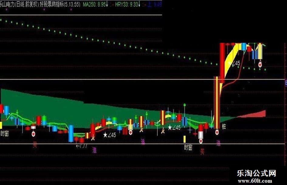 超卖:MA(C,10)*IF(CAPITAL=0,0.95,0.9),POINTDOT,COLORRED,LINETHICK2;