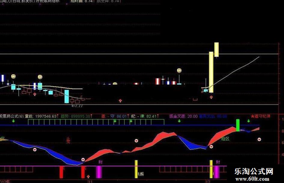 量能:IF(CAPITAL<1,MA(VOL,74),MA(SUM(J1-J2,22),3)),COLOR00DDDD,NODRAW;