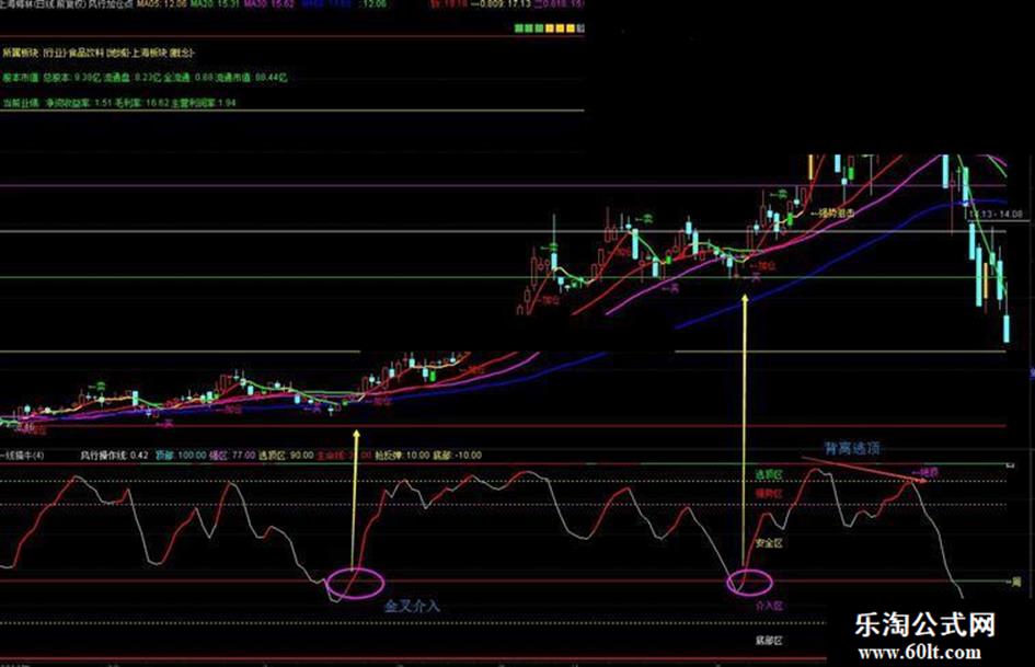 使用方法:1.指标共分五个区域:底部,介入,安全,强势,逃顶;战友们可在底部和介入区域需找合适的介入点,在强势区域持股,顶部区域出现背离逃顶;
