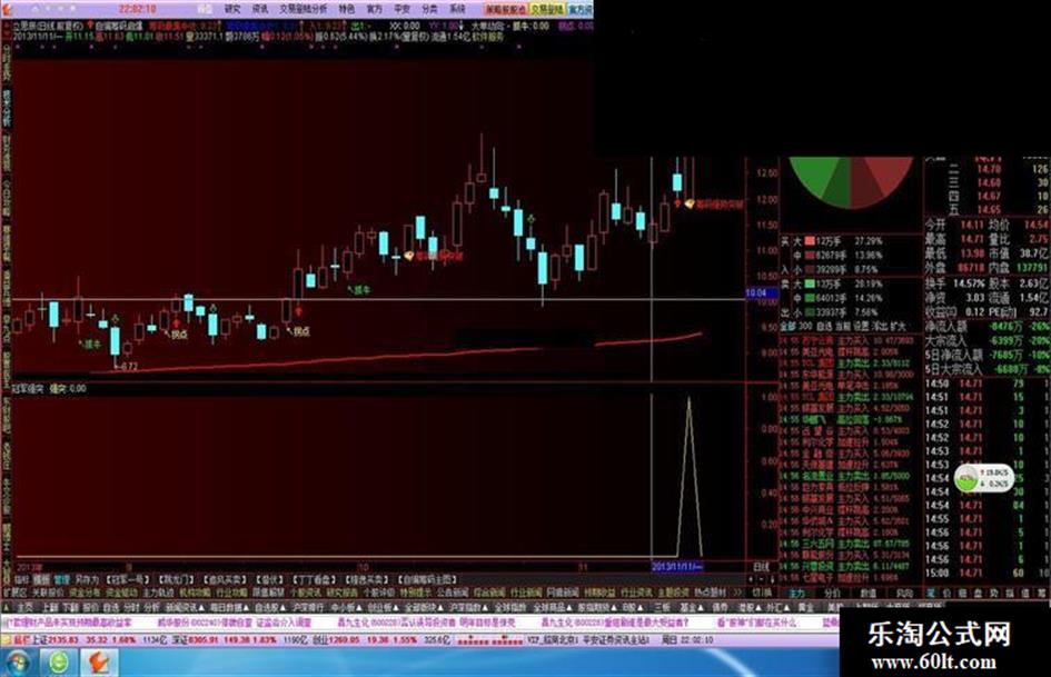 短线低盘:=(L-短底)/(短顶-短底)*100000,LINETHICK0,COLORRED;